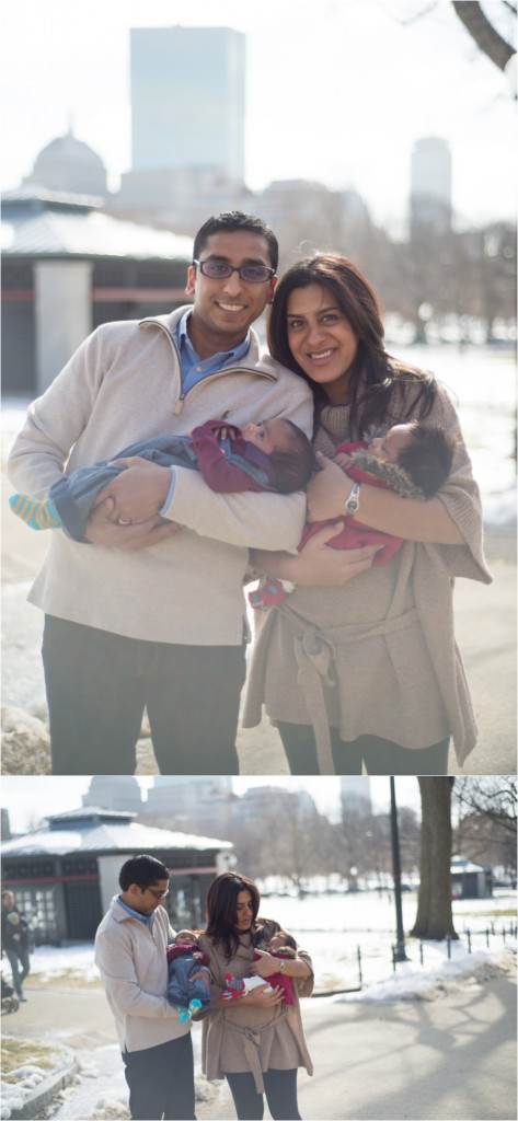 We ventured outside for a mere 7 minutes because it was a little chilly/windy. But we needed a photo to remind these littles where the first few months of their lives took place: In the heart of Boston. With Mom + Dad. Wearing adorable-but-too-big outfits that they’ll grow into someday. =)