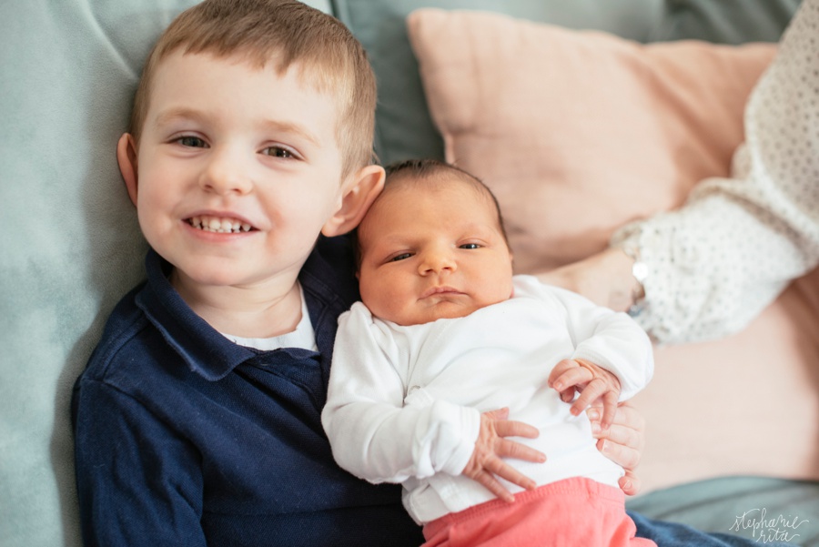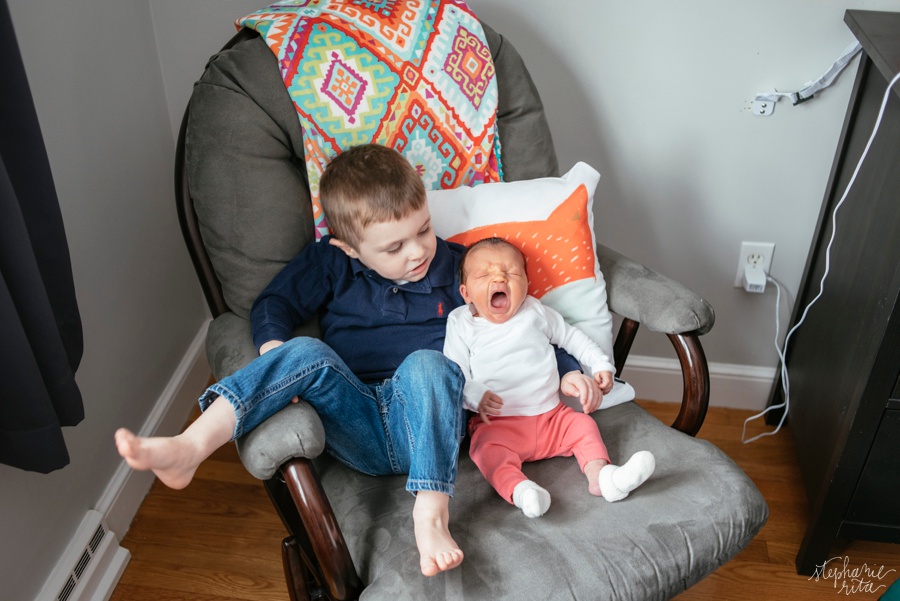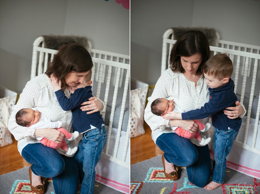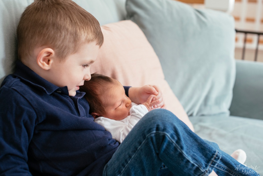 Oh my gosh, how fun it is to watch a family grow. It’s one of my favorite aspects as a photographer. I love the L family and have been photographing them since little man Jack was in his mom’s belly. Now he is three and is a new big brother to brand new baby Caroline! She was only a week old at the time of our photo shoot and already these new siblings had the sweetest relationship. I loved catching these moments! This first one has a good story: He was admiring her and saying “look how small her fingers are!” 🙂 🙂 🙂