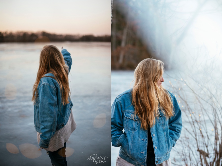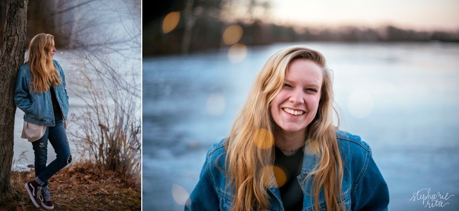 Sometimes a gal (me) just needs to get an idea out of her head. And luckily, another gal (Jessi) is willing to help! We took these portraits on a 30 degree night at Dug Pond in Natick, MA. The pond was completely frozen and made for the perfect location! I used both a prism and fairy lights to create all this bokeh-y goodness and I love how they turned out! Thank you Jessi!